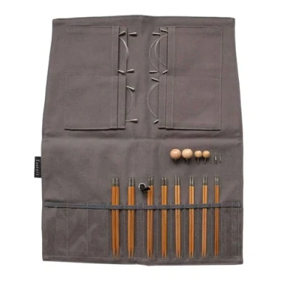 Complete Interchangeable Set: Includes 8 pairs of 12.5cm bamboo needle tips, 6 cables, 4 stoppers and 2 joints in a compact fabric case Smooth and Durable Bamboo: Koshitsu-treated bamboo tips are polished with natural plant wax for a silky finish and added protection against warping Tangle-Free Swivel Design: Rotating tip-to-cable connection prevents twisting and ensures smooth, uninterrupted knitting Customisable and Expandable: Mix and match screw sizes M1.8 and M2 with included joints and stoppers to create flexible lengths and setups Stylish Compact Case: Comes in a neatly organised fabric folding case with pockets for secure and portable storage