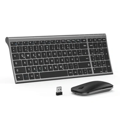 Small keyboard with number keypad - This seenda keyboard has a size that corresponds to 80% of a traditional keyboard. Despite its compact and portable design, the wireless keyboard features universal functions such as a number pad and some hotkeys for your daily use Metal Keyboard - The wireless PC keyboard consists of a robust metal base and high-quality ABS keys, ultra-thin yet durable. Thanks to the scissor foot structure, keyboard input responds quickly and quietly. Plug and play, no dropouts, no delay Rechargeable keyboard and mouse – the wireless keyboard and mouse have a built-in 280 mAh battery, which can be charged for two hours via the included micro USB charging cable and can be used for up to 60 days - with extremely long battery life. The intelligent auto sleep function also helps you save energy. Turn off the device when not in use – so you can optimize battery life. Universal compatibility - This wireless keyboard with mouse can be used with computers, laptops and smart TV with USB-A port. Compatible with Win XP / Win7 / Win8 / Win10 and above Ultra-slim Keyboard Mouse Set - The thinnest part of the wireless keyboard is only 4 mm, which looks stylish, elegant, and simple. The wireless mouse and keyboard weighs 0.6 kg and is therefore easy to carry. Ideal for use in the office, at home and on the go. Customer Service: SEENDA products have a 2-year warranty – buy with confidence! If you have any dissatisfaction or problems, please contact us at any time. We will reply within 24 hours with a solution.