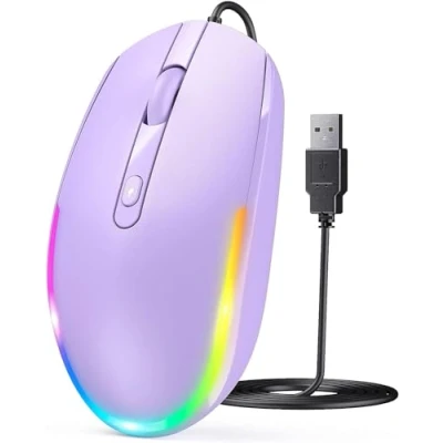 【Stable Wired Mouse】The LED mouse can provide stable connection for PC, laptop, computer or desktop. Great choice for long-time use in office or at home. 【Customizable RGB Lighting】This wired computer mouse features 5 different backlight modes, including Rainbow Breathing Light, Rainbow Streaming Light, Neon, Floating Light, and Lighting Off. With just the press of one button, you can easily change the colour and create a fancy and cool atmosphere for gaming or work. 【Comfortable & Ergonomic Design】Our PC mouse is designed with a skin-friendly surface and non-slip side to reduce hand sweat and provide a comfortable feeling even during long-term use. While not whisper-quiet, it is quieter than traditional wired mice. 【Silent & High-Speed Performance】This laptop mouse has been tested for over 3 million quiet clicks, ensuring smooth tracking, accurate sensitivity, and effortless scrolling. With 1600DPI, it can perfectly meet your needs both at home and in the office. 【Long Cable for Convenience】Our USB mouse comes with a 1.5m cable that connects to any USB port, making it easy to plug and play. The cable is long enough for use with your PC, desktop, laptop, or computer.