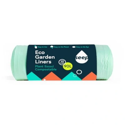 SEEP THE ENVIRONMENTAL BRAND YOU CAN TRUST - The team at Seep have partnered with climate charity "On A Mission" to take responsibility for our impact on the Earth. On A Mission is helping us reduce and offset our carbon emissions so we are officially a "Climate Positive" company. We're proud to partner with On A Mission and support their fantastic reforestation projects. ECO-FRIENDLY BIN BAGS - Boasting extreme green credentials, certified compostable (EN13432 & TUV compost home) and to VGS, which means the material will hold for 4 weeks after start of use. Even our packaging is 100% recyclable, which does not release microplastics into the environment, making us the #1 choice for conscientious lovers of our planet. Our range of bin bag liners fits all sizes of bins up to 90L perfectly & features a reinforced garbage bag base to prevent leaks and splits. MULTIPACK OF ECO TRASH BAGS - 100% compostable and biodegradable, our environmentally friendly 90-litre garden waste bags come on a roll and perfect for collecting grass cuttings, wood chippings, plants & weeds from around the garden. They're approved for local authority collection and are high quality and reinforced to prevent leaking. CLEAR BAG APPROVED FOR LOCAL AUTHORITY & COUNCIL COLLECTION - Seep living is always thinking ahead about how we can make household items better for the planet. Our garbage bags are manufactured from GMO-free renewable materials, they are completely biodegradable clear bin bags that contain no micro-plastics and are compostable. For use in small bins & large bins. JOIN THE SEEP MOVEMENT - Your order of these bin liners helps to reduce the number of virgin plastics going into circulation and horrible black plastic bags to landfill or incineration plants. Seep products support our charity partners with their reforestation projects. We are officially a "Climate Positive Company". All our products are eco-friendly and sustainable.