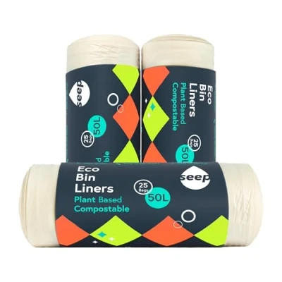 SEEP Compostable 50 Litre Bin Bags 50L Eco Friendly Liners Large Kitchen Biodegradable Clear 75 3 x Rolls