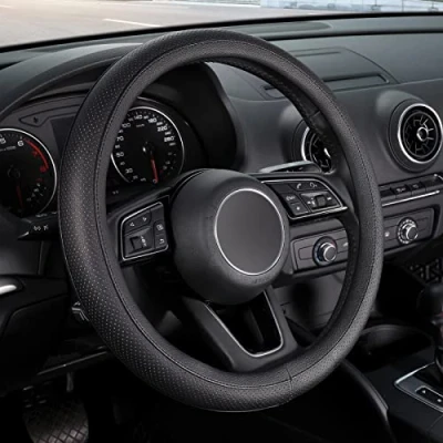ARMOR UP YOUR CAR: The durable and easy-to-install steering wheel cove is the premier option for covering an old or worn original factory steering wheel. The black material complements your car interior in a classic way. NON-SLIP AND PROTECTION: Constructed from less slippery microfiber leather exterior and rubber lining, this car wheel cover adds secured safety performance when driving. It also protects your steering wheel from sunburn, scratches, fading, wear, and dirt. NO MORE STICKY: The auto steering wheel cover is super comfy to hold, the pores on it are breathable and they absorb the hand-sweat that the summer heat causes, allowing you to grip the steering wheel much better. HAND-SAVER: The microfiber leather is much softer than factory-installed steering wheel. It provides a comfortable touch when driving, helps reduce driving fatigue, and brings you a pleasant driving experience. READY TO INSTALL: Warm up the steering cover, and slip it on your steering wheel. Installation is fairly easy, any adult can install this steering wheel cover. Fits small size steering wheels with an outer diameter of 35.5-36 cm.