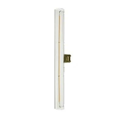 Dimmable S14d LED line lamp 300mm filament with clear glass, 6.2 watts This LED lamp for S14d sockets is made of transparent glass so that the filaments are visible. These emit warm white light with good color rendering. Due to the 360 degree beam angle, this line light provides an overall good illumination. In addition, there is also the possibility to dim the light intensity externally. - comparative value: 39 watts - warm white light color (2,700 K) - high color rendering index (CRI >;90) - number of switching cycles: 100,000 - externally dimmable