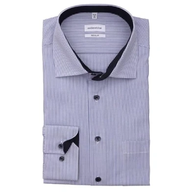 Seidensticker Men's Business Shirt Regular fit Non Iron Kent Collar Long Sleeve 100% Cotton Blau