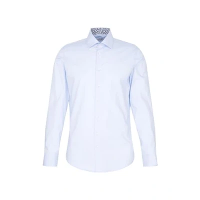 Seidensticker Men's Business Shirt Slim fit Non Iron Kent Collar Long Sleeve Patch 100% Cotton Hellblau