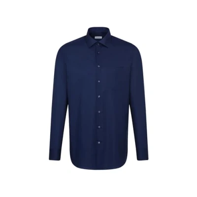 Seidensticker Men's Business Shirt Regular fit Non Iron Kent Collar Long Sleeve 100% Cotton Dark Blue
