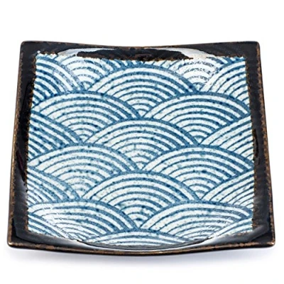 Only at The Japanese Shop Size: 17.2cm x 17.2cm x 2.5cm / 17.1 x 17.1 x 2.5cm A small square ceramic Japanese plate with a stylish Indigo Blue Wave detail Optionally available with gift wrapping and gift tag with a message of your choice, simply fill in a gift message at checkout.