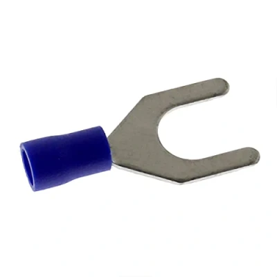 25 x fork cable lug for cross section 1, 5-2, 5 mm2 - insulated - hole diameter: M8 Fork cable lug (fork lug), suitable for the connection of single conductors and finely wire copper strands. Material: tin-plated copper, identification colour: blue. Dimensions (mm): B = 14, F = 12, 5, L = 29, 2, H = 10, D = 4, 9, Manufacturer: Matrix Handels GmbH