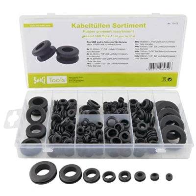 SeKi 17473 Cable Grommets Assortment, 180 Pieces Rubber, Black