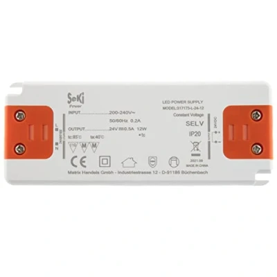 SeKi LED driver/power supply with 24 V DC output voltage and 0.5 A 12 W current LED transformer without minimum load with approval for mounting in furniture - for connecting 24 V LED bulbs to 230 V The ballast should not be operated with the max. load. Plan a 15% reserve Input voltage: 100-240V. Output voltage: 24 V. Minimum load: 0 W. Maximum current output: 0.5 A. Power consumption zero load: 0.5 W. Suitable for parallel switching; overload protection by current limitation, auto recovery; LED indicator for power-on. Insulation class II. Closed design., Weight: 0.1543235834 Pounds, Manufacturer: Matrix Handels GmbH