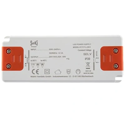 SeKi LED driver/power supply with 24 V DC output voltage and 0.25 A 6 watt current LED transformer without minimum load with approval for mounting in furniture - for connecting 24 V LED bulbs to 230 V The ballast should not be operated with the max. load. Plan a 15% reserve Input voltage: 100-240V. Output voltage: 24 V. Minimum load: 0 W. Maximum current output: 0.25 A. Power consumption zero load: 0.5 W. Suitable for parallel switching; overload protection by current limitation, auto recovery; LED indicator for power-on. Insulation class II. Closed design., Weight: 0.1543235834 pounds, Manufacturer: Matrix Handels GmbH