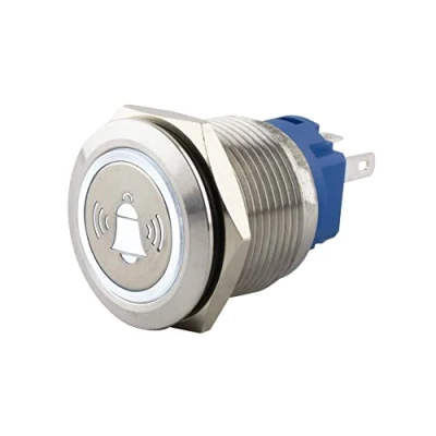 SeKi Stainless Steel Push Button Diameter 19 mm Touch Flat Head Shape Coloured Illuminated Bell Symbol in White Soldering Eyelets/Flat Connector 0.5 x 2.8 Connection