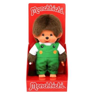 Cute Monchhichi boy in a white T-shirt and dungarees with frog face, size approx. 20 cm The face, hands and feet of the monkey like doll are made of plastic The brown fur is made of particularly soft plush and invites you to cuddle, play and love The Monchhichi holds a dummy in his right hand that it can put in his mouth Ideal gift for birthdays, Christmas and Easter for children, lovers, collectors and nostalgics, Manufacturer: Sekiguchi