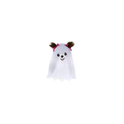 Cute Monchhichi girl with pink bows in hair and white ghost cape with printed face, size approx. 20 cm The face, hands and feet of the monkey like doll are made of plastic The brown fur is made of particularly soft plush and invites you to cuddle, play and love The Monchhichi holds a dummy in his right hand that it can put in his mouth Ideal gift for birthdays, Christmas and Easter for children, lovers, collectors and nostalgics, Manufacturer: Sekiguchi
