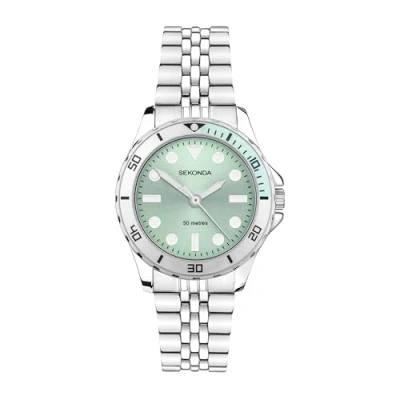 Sekonda Balearic Ladies 33mm Quartz Watch in Green with Analogue Display, and Silver Stainless Steel Strap 40565