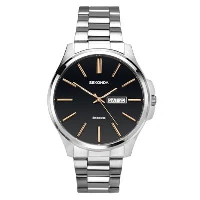 Sekonda Men's Quartz Watch with Black Dial Analogue Display and Silver Stainless Steel Bracelet 1097.27