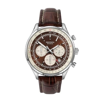 Sekonda Men's Quartz Watch with Brown Dial Chronograph Display and Leather Strap 3407.27