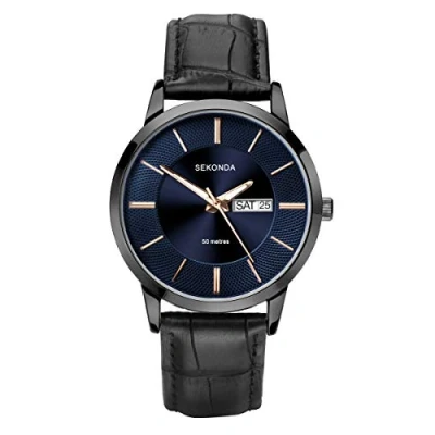 Sekonda Mens Classic Analogue Quartz Watch with Black Leather Strap 1813