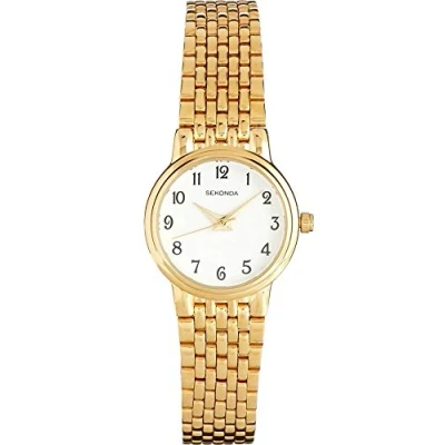 Sekonda Women's Quartz Watch with White Dial Analogue Display and Gold Stainless Steel Bracelet 4090.27