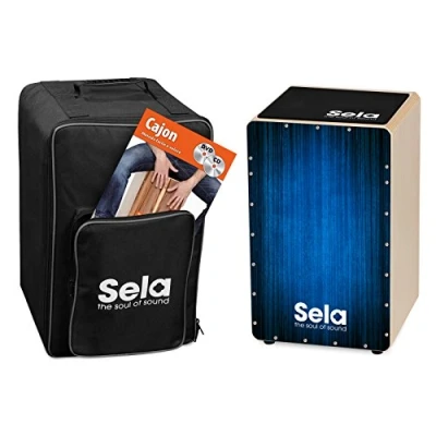 Set contains everything for an ideal start in the world of Cajon playing Sela Various Blue Snare Cajon - Made in Germany Including Cajon backpack for an ideal protection of your instrument High sitting comfort due to the included the black Cajon pad With Italian Cajon book + CD + DVD