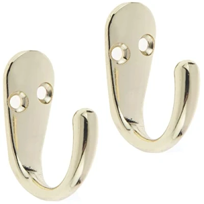 Pack of 2 single hooks for robes, coats, jackets, scarves or even smaller items like keys Ideal for fixing to doors or wall (screws included) Can be used on its own or as a replacement on an existing hook rail or even for creating a unique hook rail design Heavy duty hooks in a modern polished brass finish, Weight: 0.0661386786 pounds, Manufacturer: Select Hardware