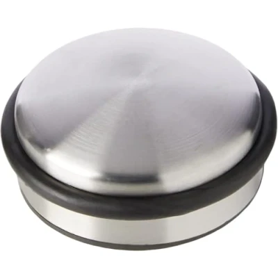 Heavy-Duty Door Stop -- Practical, stylish, modern. This metal door stop from Select Hardware weighs in at 1.2kg with a 10cm diameter. Use it to prop open doors around the home from the bedroom to the bathroom, kitchen to the dining room Metal Door Weight with Satin Nickel finish -- This is an iron door stop with a stainless steel exterior boasting a Satin Nickel finish. This makes it easy to keep clean - Just wipe down with a soft damp cloth then buff dry Suitable for a wide range of floors -- The non-slip door step floor means you can use it on carpet or tiles, wood or PVC, even painted floors. It is designed for indoors use primarily but can be used on external doors that open inwards Protective Bumper Ring -- The rubber ring that extends around the circumference helps protect walls, doors and paint work. Use this heavy duty door stop to prevent doors crashing against the skirting as well as keeping doors open Weight & Dimensions -- Our modern door stop weighs in at 1.2kg, measures 102 mm in diameter and is 4.7cm high