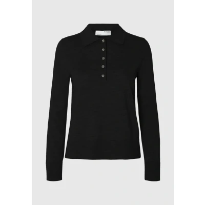 Selected Femme Slfthea Collar NECK Long sleeved top, Women's, Size: 10, Black