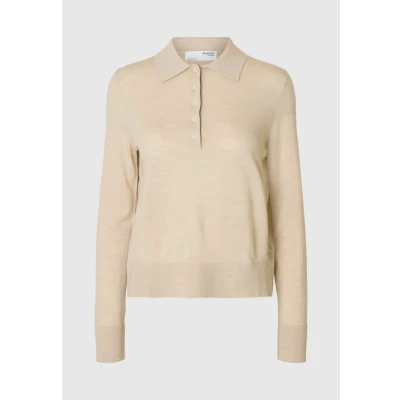 Selected Femme Slfthea Collar NECK Long sleeved top, Women's, Size: 12, Oatmeal