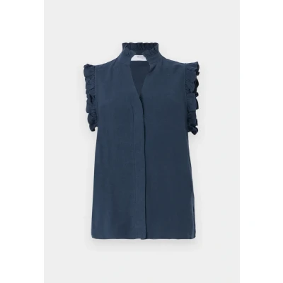 Selected Slfviva SUN Ruffle Buttondown blouse dark sapphire Sale at Zalando UK | Outer fabric material: 85% viscose, 15% linen | Sale order at Zalando UK! Size: 12. Color: Dark sapphire. Pattern: plain.