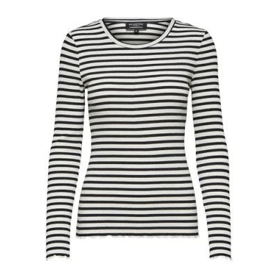SELECTED FEMME Women's Slfanna Crew Neck Tee Str Noos Long sleeved, Black/Stripes: Snow White Stripes., L UK