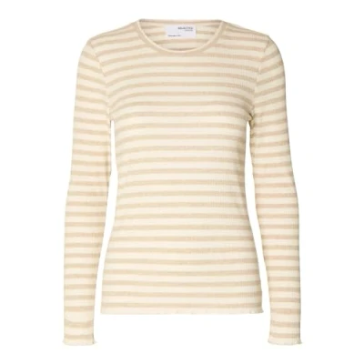 Selected Femme Women's Slfanna LS Crew Neck Tee Str Noos Longsleeve T Shirt, Oatmeal, M