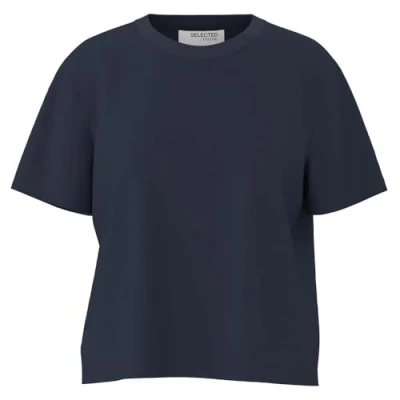 SELECTED FEMME Women's Slfessential SS Boxy Tee Noos T Shirt, Dark Sapphire, M