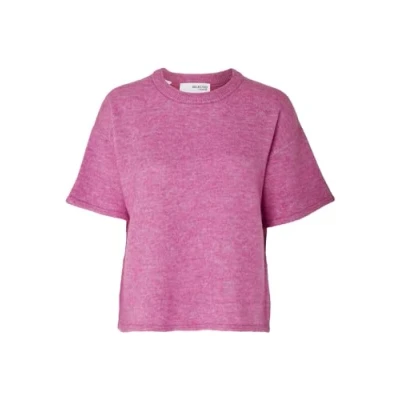 SELECTED FEMME Women's Slfmaline Liliana 2/4 Knit O Neck Noos T Shirt, Phlox Pink/Detail: Melange, L