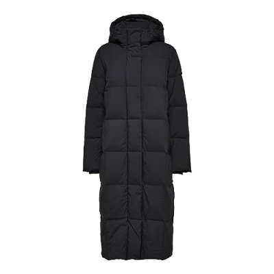 Women's long buffer coat with hood. Side pockets, zip Made with recycled polyester. This product is made with recycled polyester. Recycled polyester preserves natural resources and reduces the amount of waste.