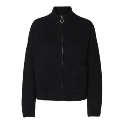 SELECTED FEMME Women's Slfsia Ras Ls Knit Zipper Cardigan Noos Sweater, Black, S
