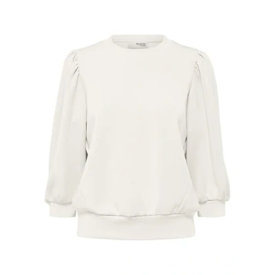 SELECTED FEMME Women's Slftenny 3/4 Sweat Top Noos, Snow White, S