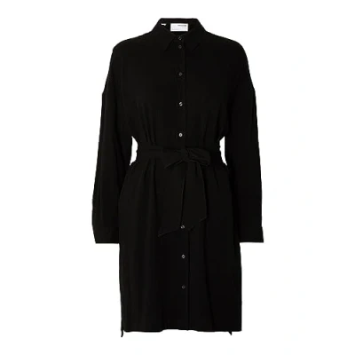 SELECTED FEMME Women's Slfviva Tonia Long Linen Shirt B, Black, 10