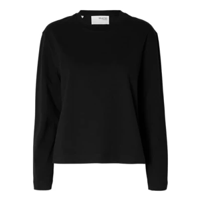 SELECTED FEMME Women's Slfessential Ls Boxy Tee Noos Longsleeve T Shirt, Black, Large