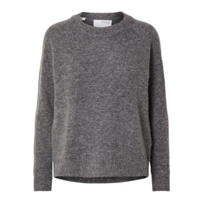 SELECTED FEMME Women's Slflulu Ls Knit O Neck B Noos Jumper, Medium Grey Melange, XL