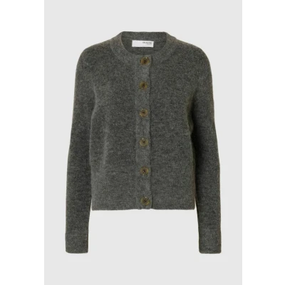 SELECTED FEMME Women's Slfsia Ras Ls Knit Cardigan Noos Sweater, Medium Grey Melange, XXL