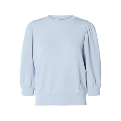SELECTED FEMME Women's SLFTENNY 3/4 Sweat TOP NOOS Sweatshirt, Cashmere Blue, M