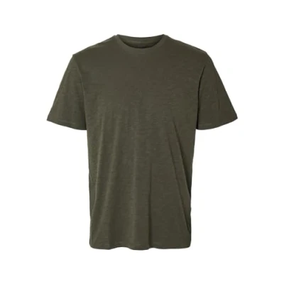 SELECTED HOMME Men's Slhaspen Slub SS O Neck Tee Noos T Shirt, Forest Night, L