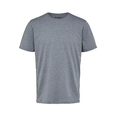 SELECTED HOMME Men's Slhaspen SS O Neck Tee Noos T Shirt, Medium Grey Melange, L
