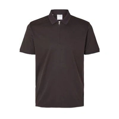 SELECTED HOMME Men's Slhfave Zip Ss Polo Noos Shirt, Chocolate Cake, M