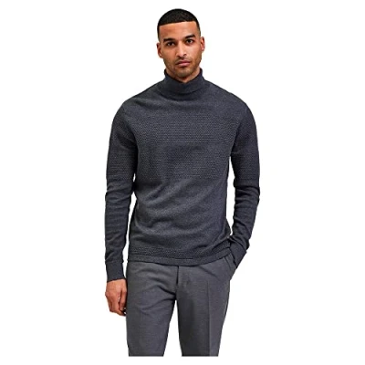 SELECTED HOMME Men's Slhmaine Ls Knit Roll Neck W Noos Sweater, Dark Grey Blend, S