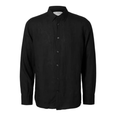 Selected Homme Men's Male Hemd 100% Leinen Slhregkylian Linen Shirt LS Classic Noos, Black, L