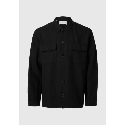 SELECTED HOMME Men's Male Overshirt Leinenmix Slh Leroy Sun Ls Noos, Black, L