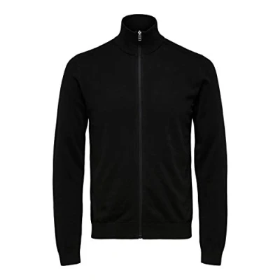 SELECTED HOMME Mens Slhberg Full Zip Cardigan B Noos Sweatshirt, Black, S UK