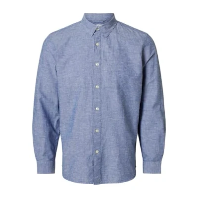 SELECTED HOMME Men's Slhslimnew Linen Shirt Ls W Noos, Medium Blue (Medium Denim), XL