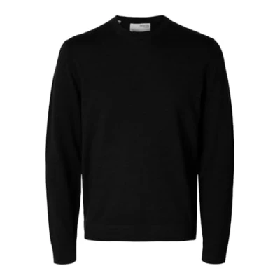 SELECTED HOMME Men's Slhtray Ls Knit Merino Crew Neck Noos Pullover Sweater, Black, L